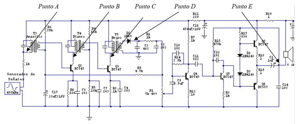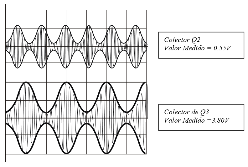 Se procedió a agregar la etapa de FI a la etapa de audio previamente construida en el anterior laboratorio. Una vez armado y revisado se procedió a medir los voltajes colector – emisor de los transistores Q2, Q3, Q4, Q5, Q6 y Q7.