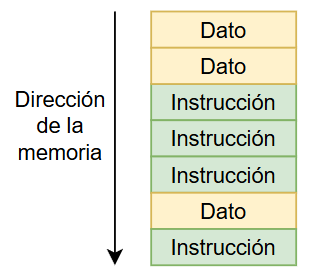 Como la memoria de programa y de datos van a ser la misma memoria, entonces debemos asumir que el tamaño de las instrucciones y de los datos deben ser iguales.
