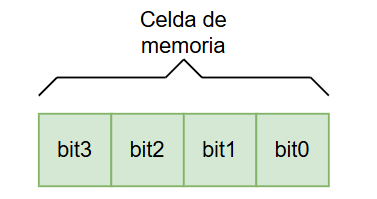 A este tamaño de memoria se le llama también «nibble» (la mitad de un byte) y es el tamaño que tendrán tanto datos como instrucciones. Solo así podrán convivir juntos en una misma memoria (que es lo que se espera pues no conozco ninguna memoria que maneje celdas de diferentes tamaños). Vista como una arreglo, la memoria podría diagramarse así: