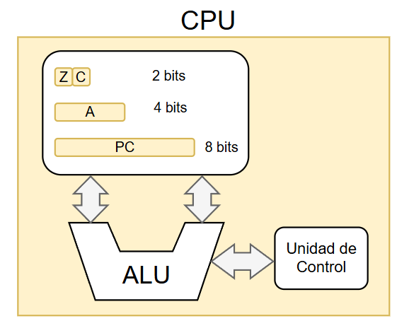Con estas decisiones, ya podemos esquematizar mejor los interiores de nuestra CPU: